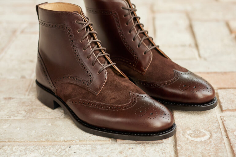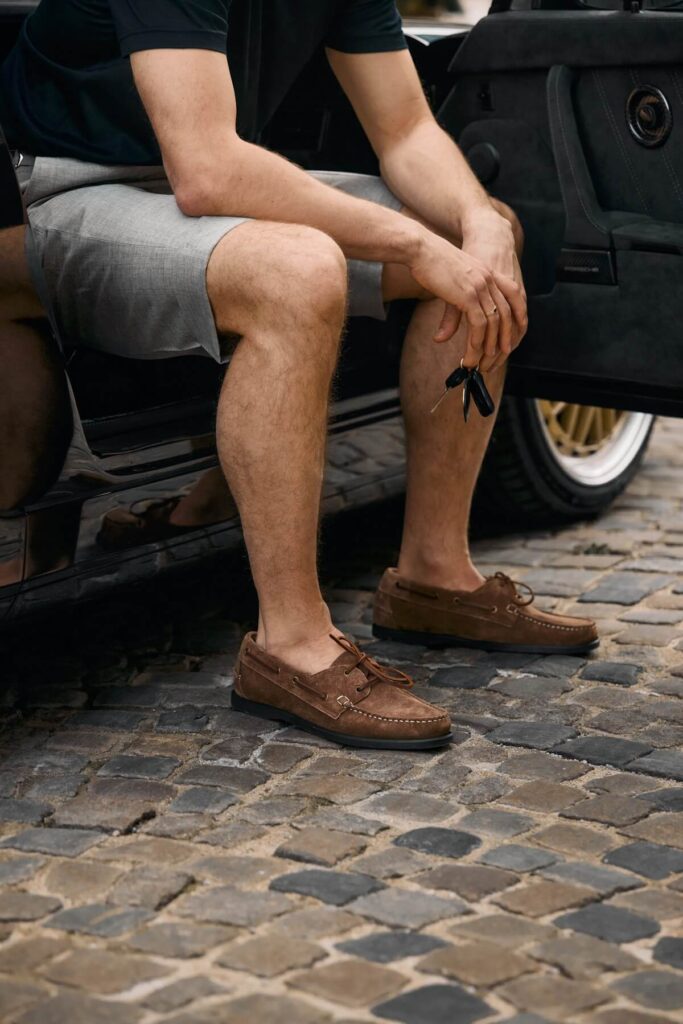 Kolejny, często niedoceniany element stroju to buty. Lato to idealna pora by założyć buty wsuwane loafersy i mokasyny. Jednak nie jest to jedyny dobry wybór. Ponownie bowiem nie tylko model buta decyduje o tym, czy jest to obuwie letnie. Duże znaczenie ma rodzaj skóry, z której wykonano cholewkę, sposób szycia, rodzaj podeszwy czy wreszcie po prostu kolor. Do sesji zdjęciowej wybrałem półbuty i trzewiki uszyte metodą goodyear welted ze skóry zamszowej oraz monki ze skóry licowej. Wybór zaskakujący dla wielu z Was, więc już spieszę z jego uzasadnieniem. Po pierwszej wśród moich kilkunastu par obuwia zaledwie jedna z nich to loafersy. Mało tego zostały uszyte one na masywnej podeszwie Dainite, metodą goodyear welted i ze skóry groszkowej. To w sumie but całoroczny, sprawdzający się z odpowiednią skarpetą i w listopadzie. Czy nie podobają mi się buty wsuwane? Wręcz przeciwnie – bardzo mi się podobają, zwłaszcza na cudzych stopach Znam osoby noszące je niemal codziennie, do wielu stylizacji od casualu po półformalne zestawy – to świetne obuwie, bardzo wygodne i eleganckie. Jednak ja dzielę mężczyzn na „Włochów” i „Anglików” i mi zdecydowanie bliżej do tej drugiej grupy (oczywiście jest też olbrzymia rzesza takich facetów, których nie da się przypisać do żadnej z tych grup, w zakresie mody i ubioru najbliżej im do Neandertalczyków). Moja żona uważa, że ubieram się jak księgowy (czyli domyślam się, że nudno), ja po prostu czuję się swobodnie w takich stylizacjach. Co nie znaczy, że nie podziwiam „Włochów” za ich odwagę, finezję i nonszalancką elegancję w ubiorze.